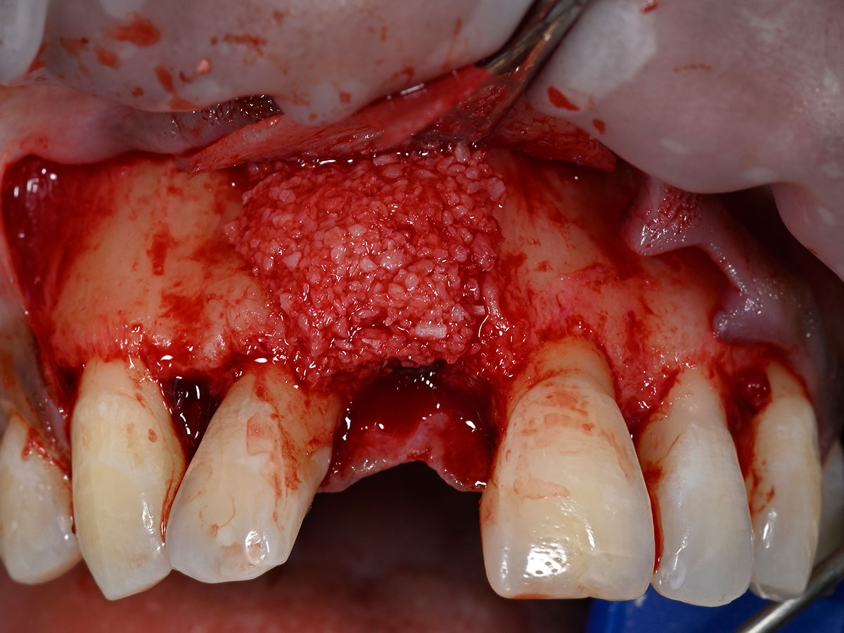 Einbringen des Knochengemisches innerhalb des natürlichen Knochenphänotyps der Patientin.