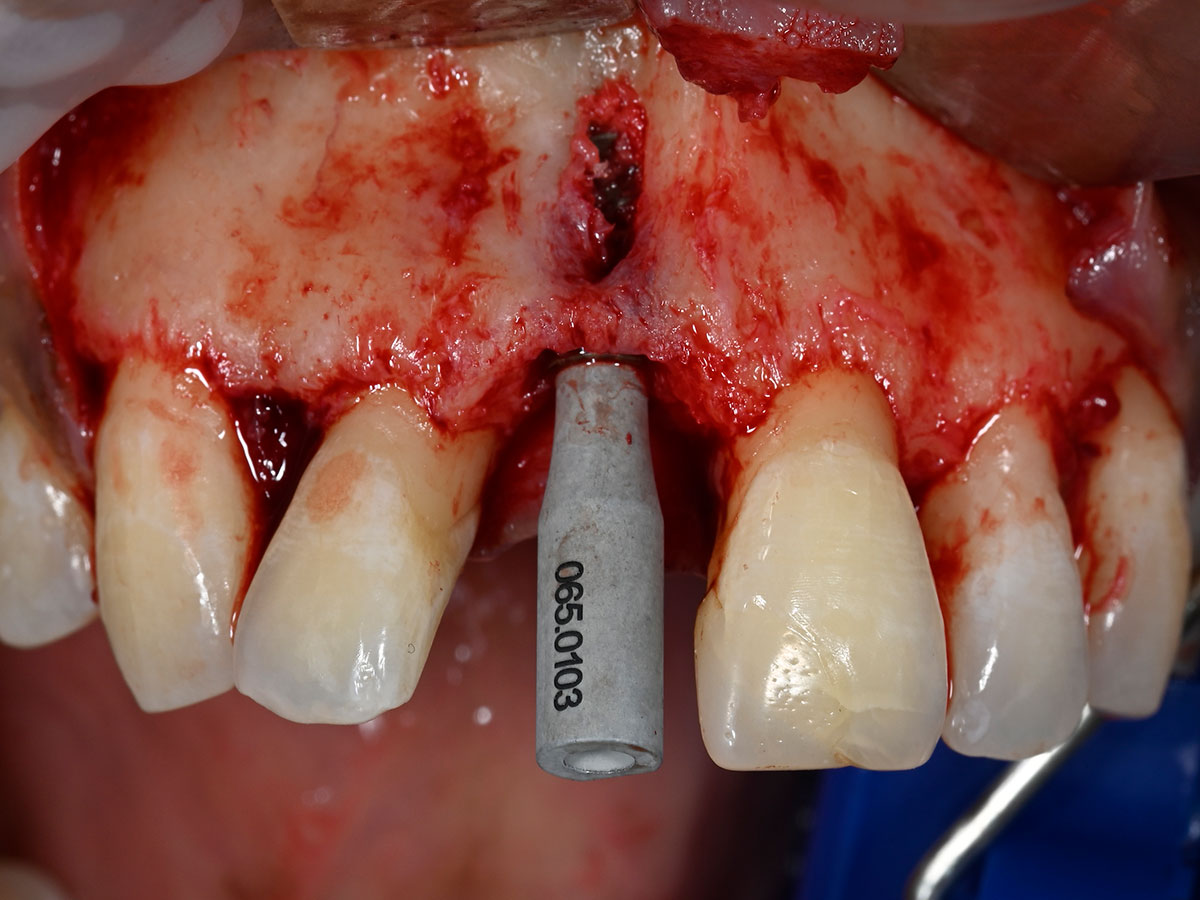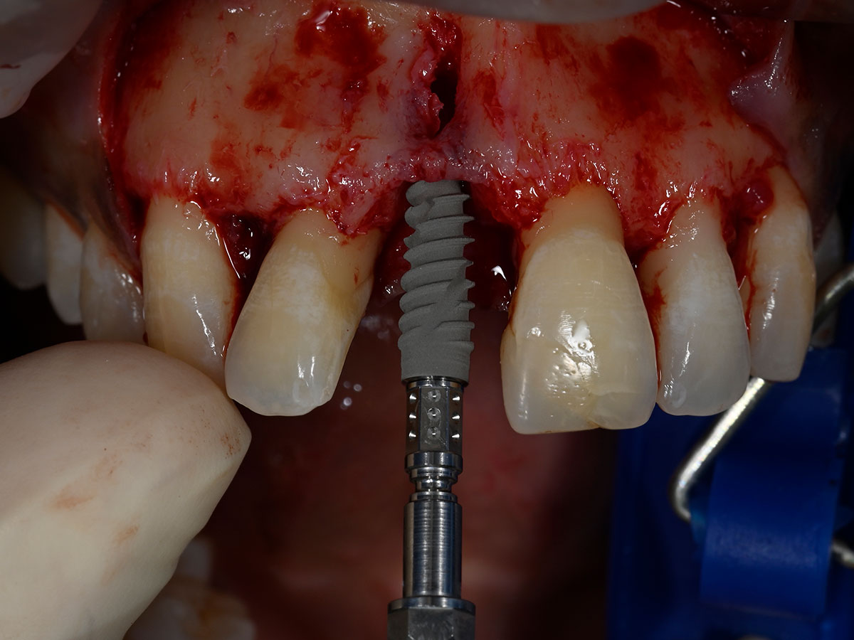 Insertion eines 4x12mm Implantats mit guter Primärstabilität.