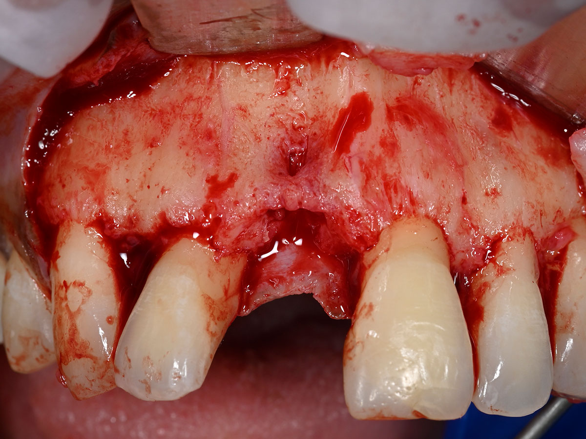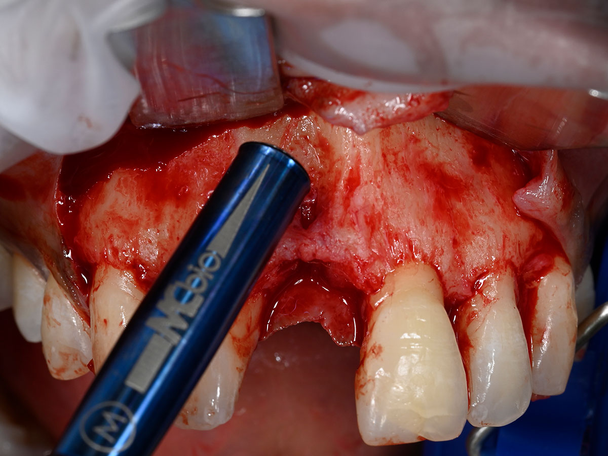 Darstellung des Knochendefekts mit Dehiszensdefekt vestibulär.