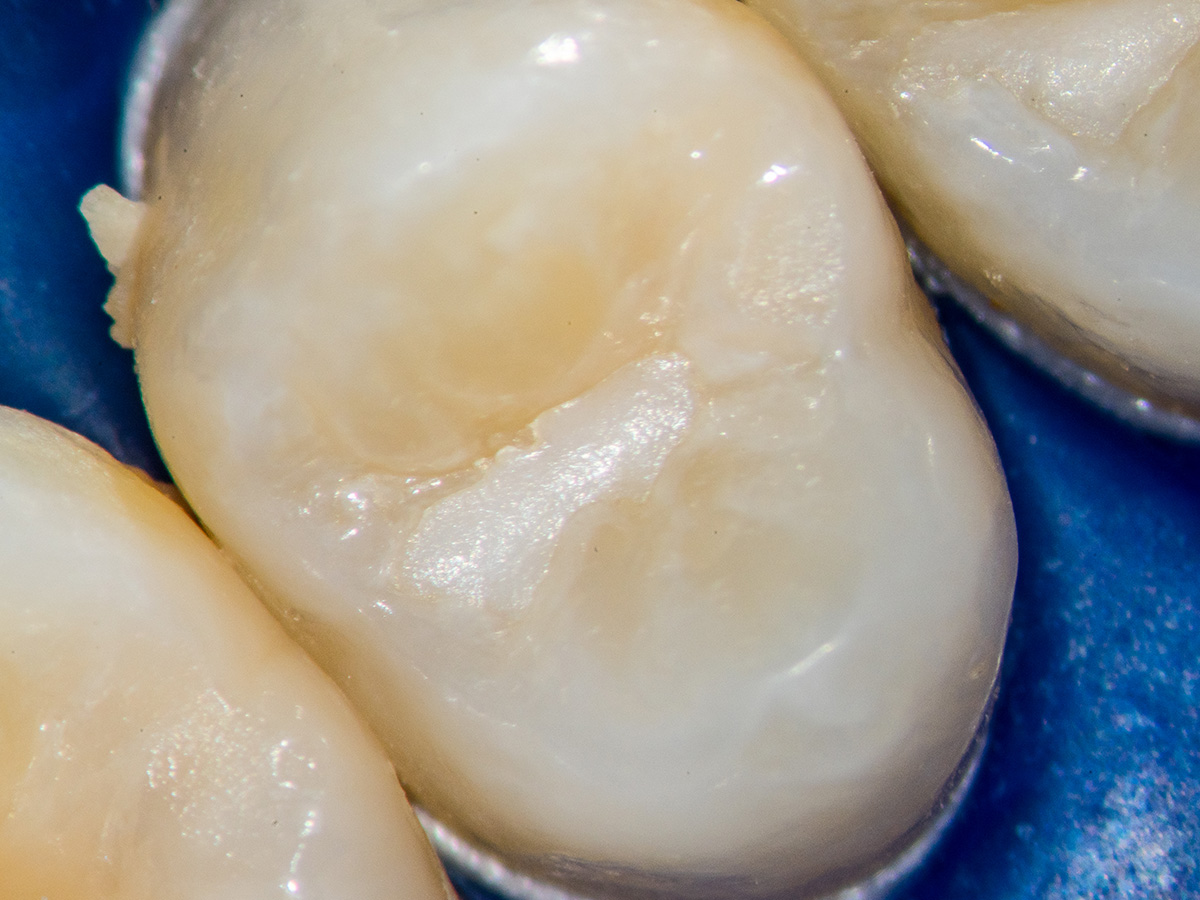 Detail der vorbereiteten Kavität. Man sieht die Theracalabdeckung über dem BioCeramic-Putty.