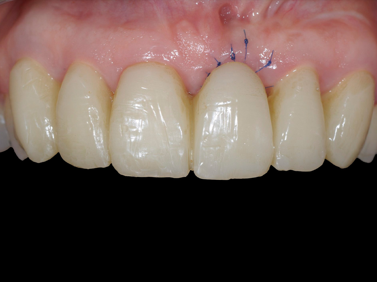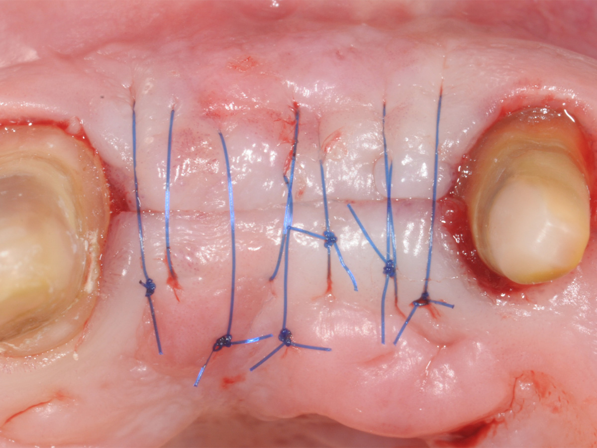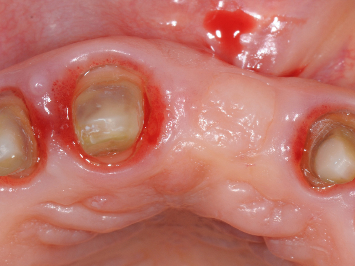 LZ-PV nach Entfernung von Zahn 21 mit Socket Seal und Weichgewebeaufbau(Punch).