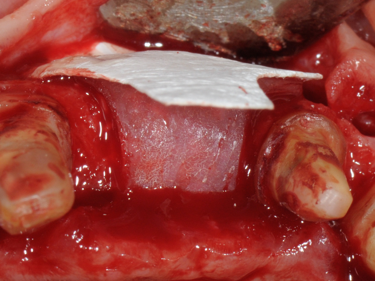 Aufbau mit OsteoBiol® mp3, Bone Lamina Soft und Evolution.