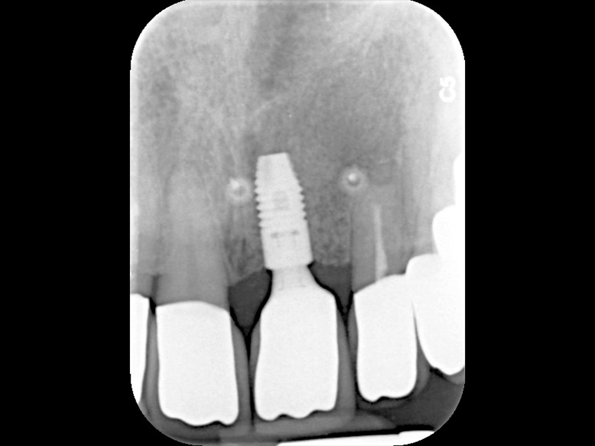 Die Röntgenaufnahme zeigt, dass Zahn 21 nicht zu erhalten ist.