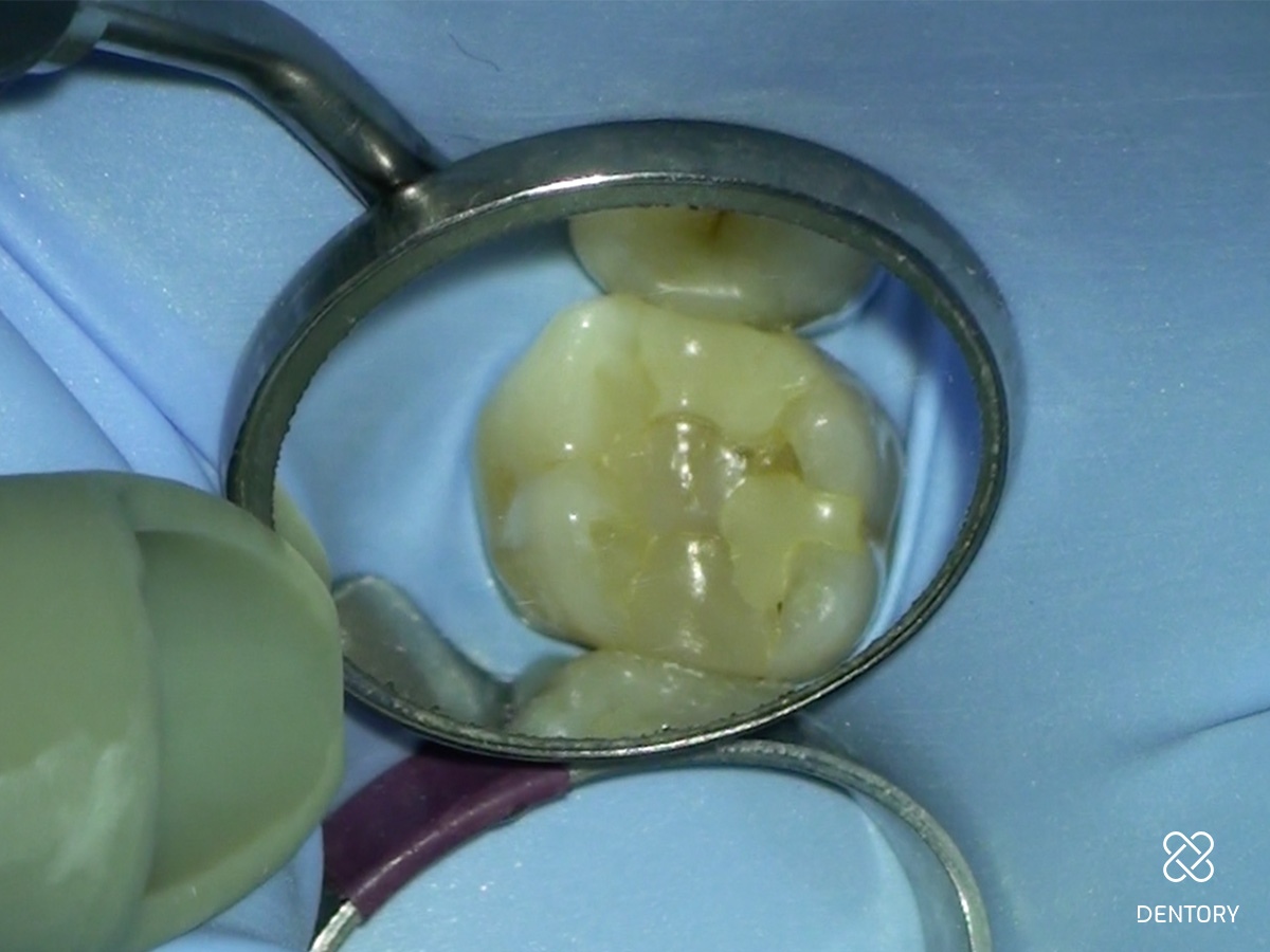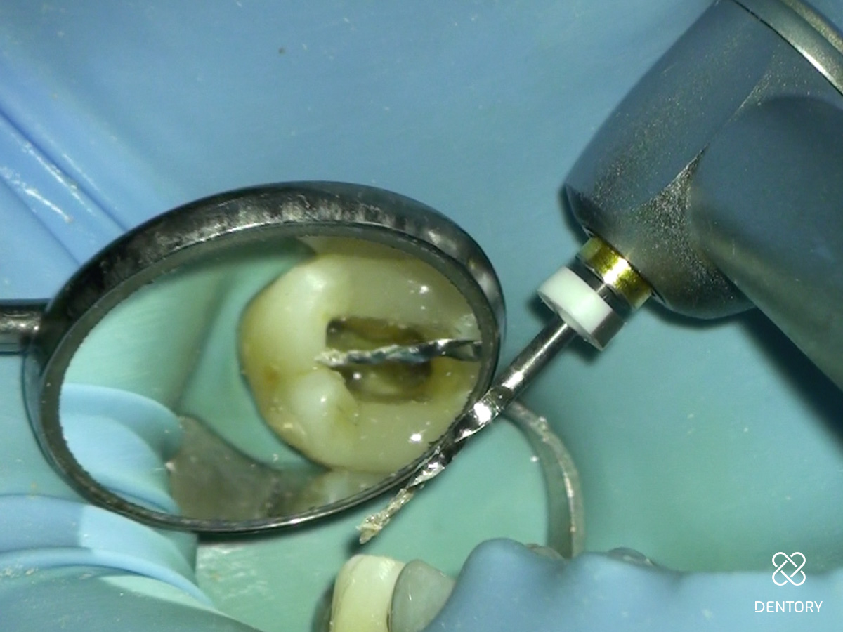 Schaffung einer Zugangskavität durch Entfernung der alten Füllungen und einer Sekundärkaries.
