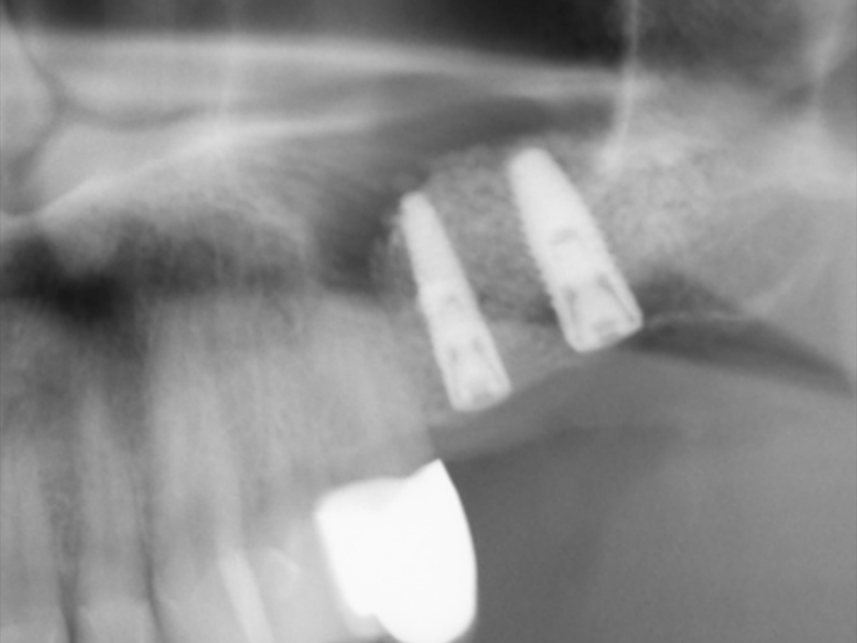 Der Fall zeigt, wie auch bei ausgedehntem Knochenverlust im Oberkiefer-Seitenzahnbereich mit minimalen Restknochenhöhen des Kieferhöhlenbodens mit Hilfe eines xenogenen Augmentationsmaterials (Apatos Mix, Technos) eine sichere und stabile Sinusbodenaugmentation gelingt.