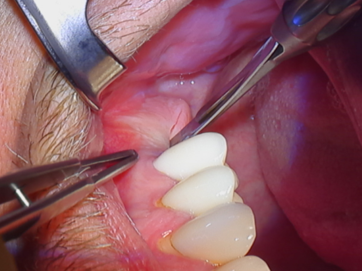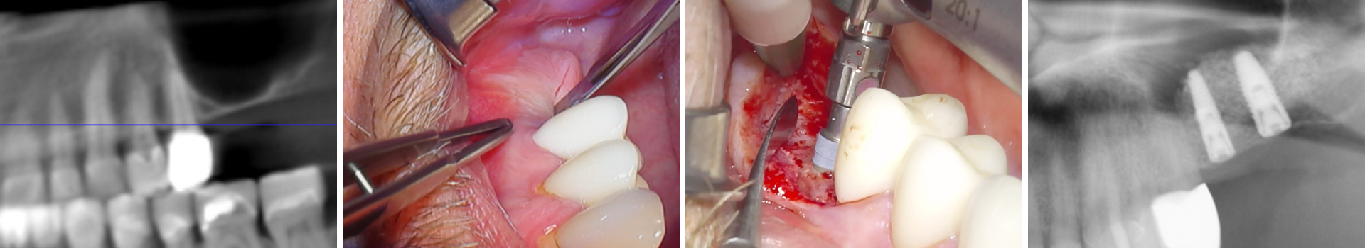 Der Wunsch des Patienten war eine festsitzende Versorgung der seit längerer Zeit zahnlosen Regionen 26 und 27. Zunächst wurde der Knochen in Volumen und Stabilität für eine folgende Implantation aufgebaut. Nach 6 monatiger Einheilzeit erfolgte die stabile Insertion von 2 Titanimplantaten. Durch eine spezielle Knochenkondensationstechnik (Versah Densah Burs) konnte beim Inserieren der Implantate eine hohe Primärstabilität von 35 Ncm erreicht werden - dies gelingt mit der Methode auch bei Implantaten, die - wie in diesem Fall - zu 80 % im neu aufgebauten Knochen stehen. Die Implantate befinden sich in der Einheilphase, die mit 4 Monaten definiert wurde.