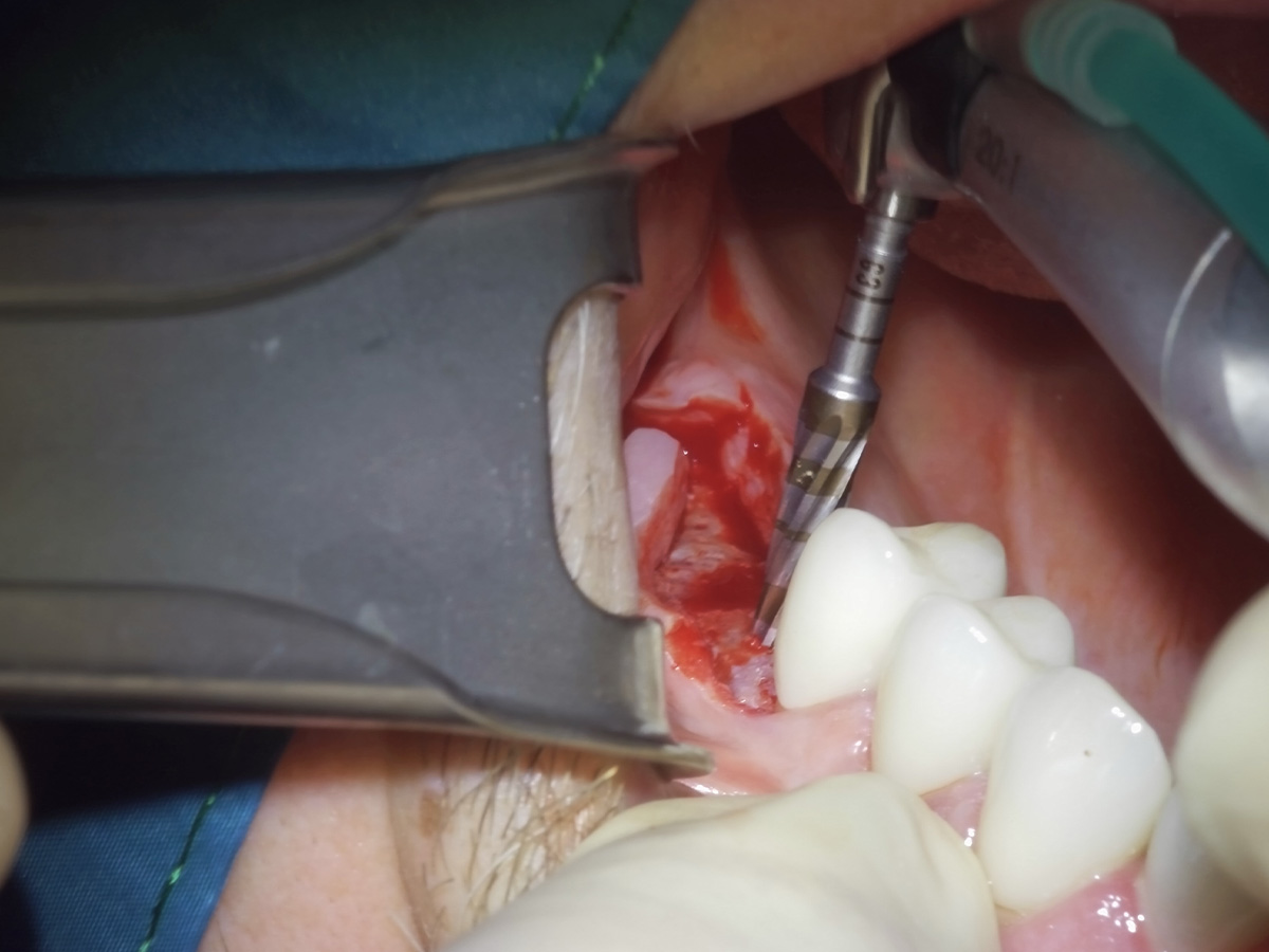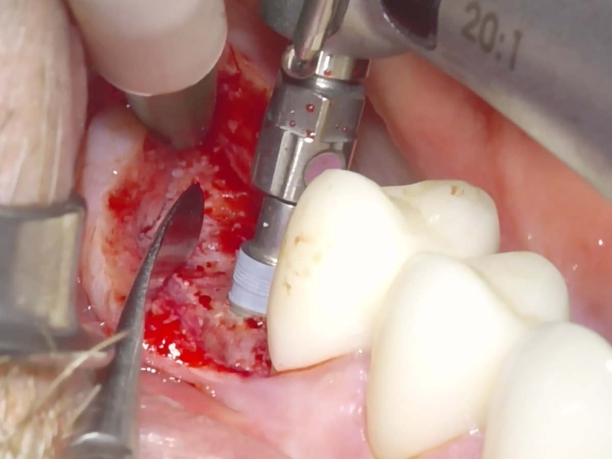 Implantatbettaufbereitung mit der Bone Condensing Methode (Versah Densah Burs).