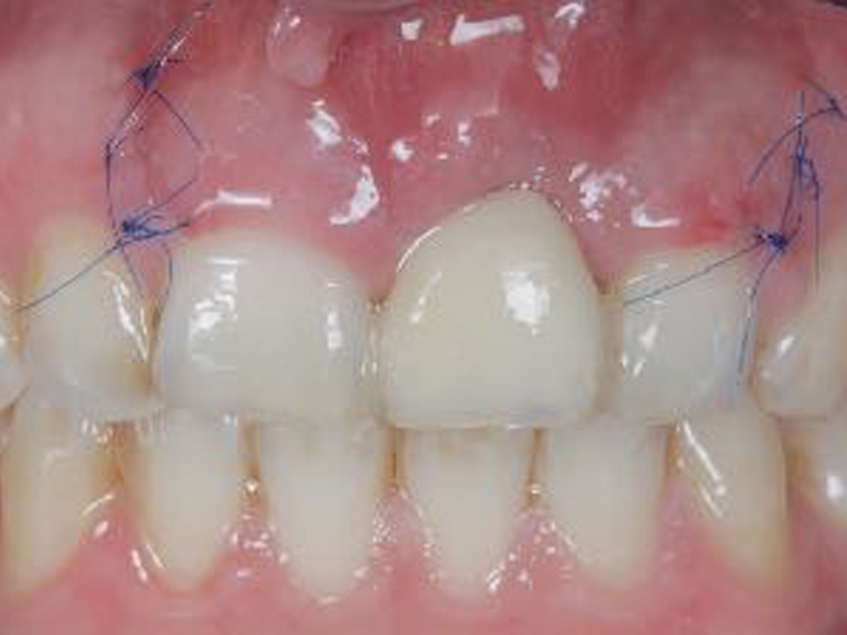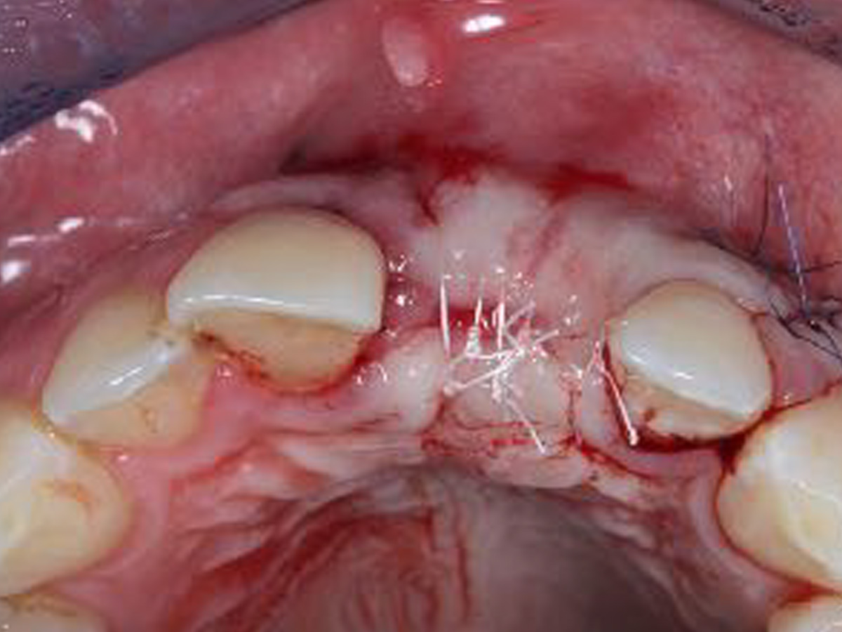 Rekonstruktion der bukkalen und palatinalen Knochenplatte mit der Lamina hart (OsteoBiol®).