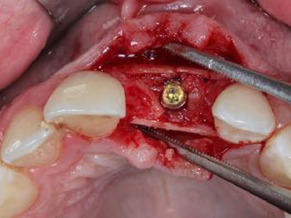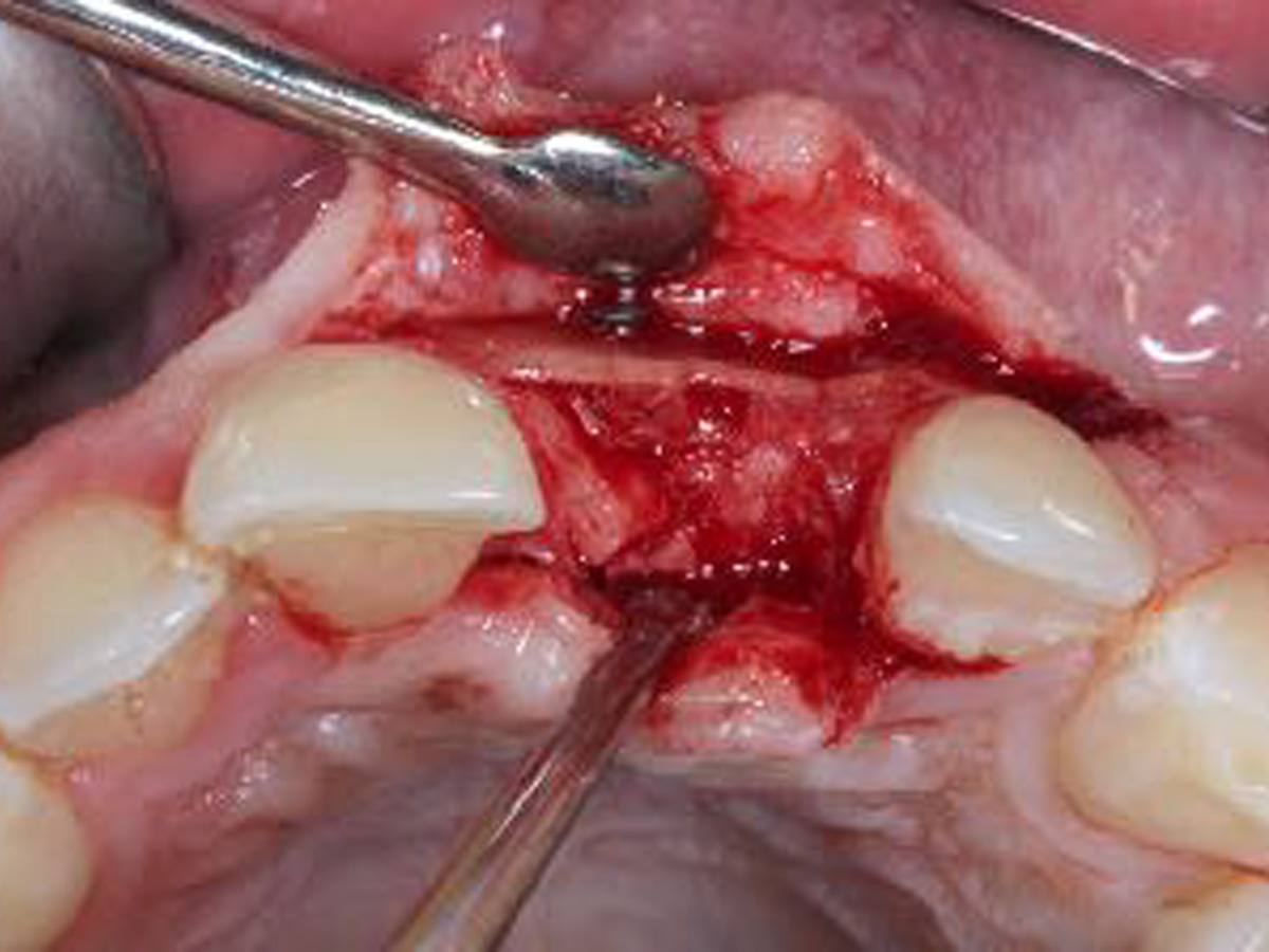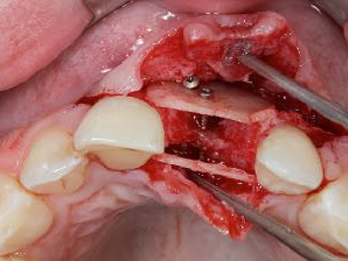 Der entstandene Raum wurde mit autogenen Knochenspänen gefüllt, die vom Ramus entnommen wurden.