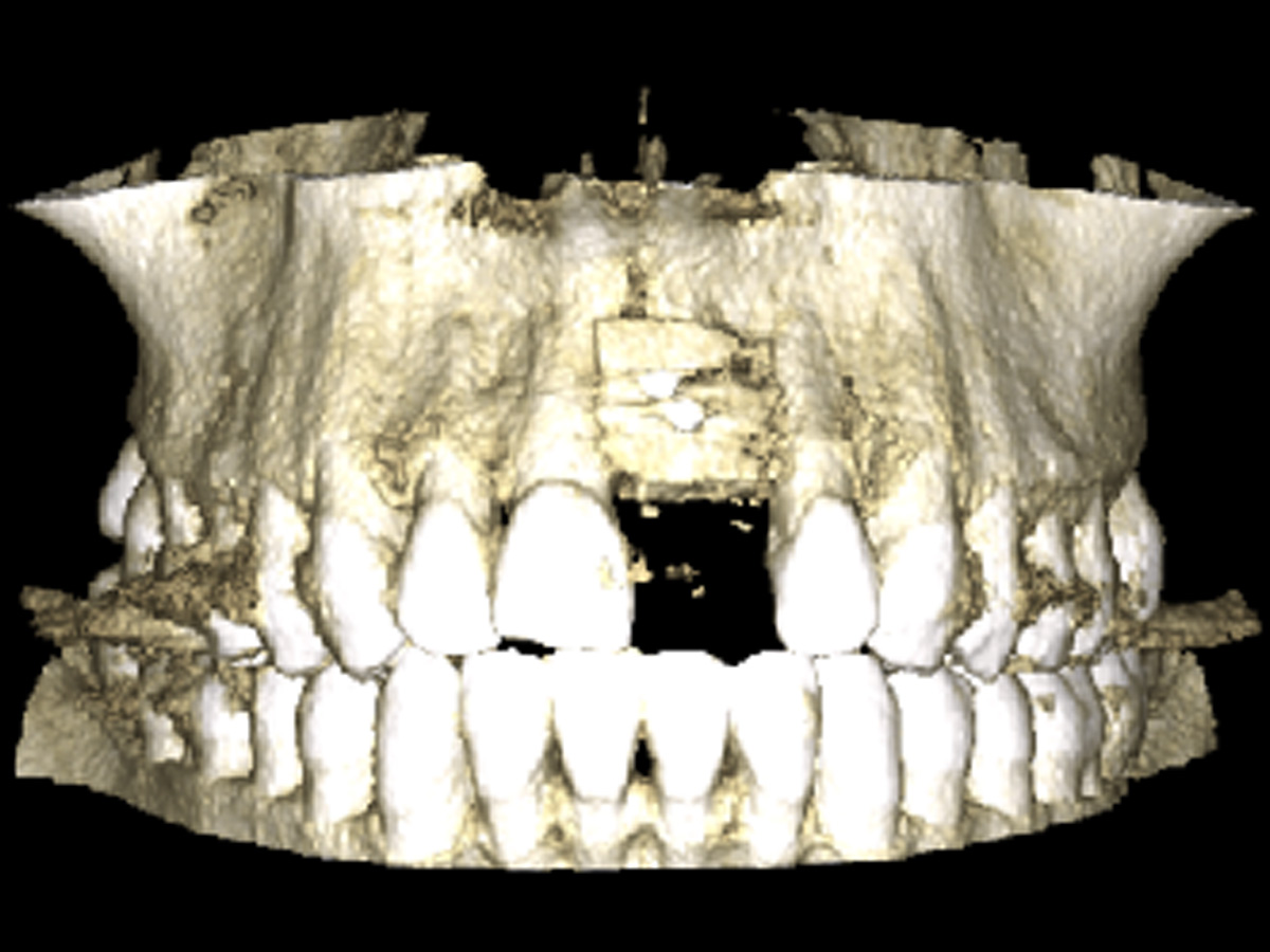 CBCT-Scan zeigt vertikalen Knochendefekt nach Klasse 5 von Benic und Hämmerle.