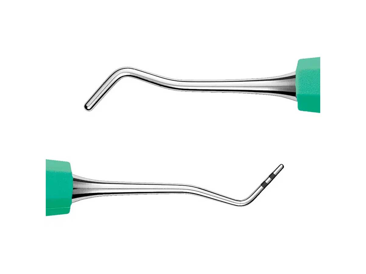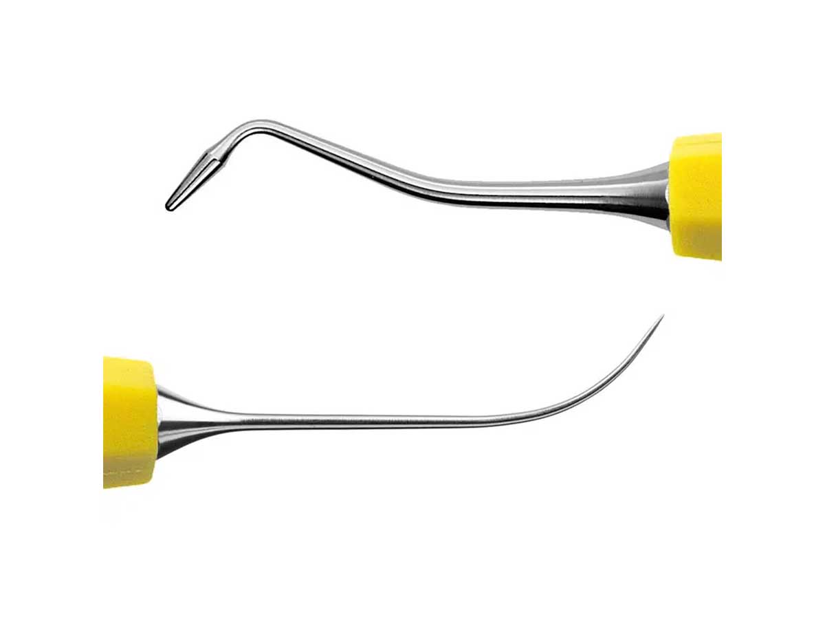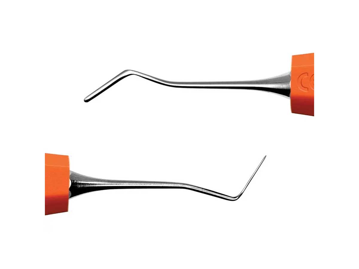 · CK10+ADEP J Modellier-Instrument: Besteht aus einer Spitze zum Modellieren der Fissuren und einem abgerundeten Kegel. Auf der anderen Seite zum Modellieren der Abschrägungen.
