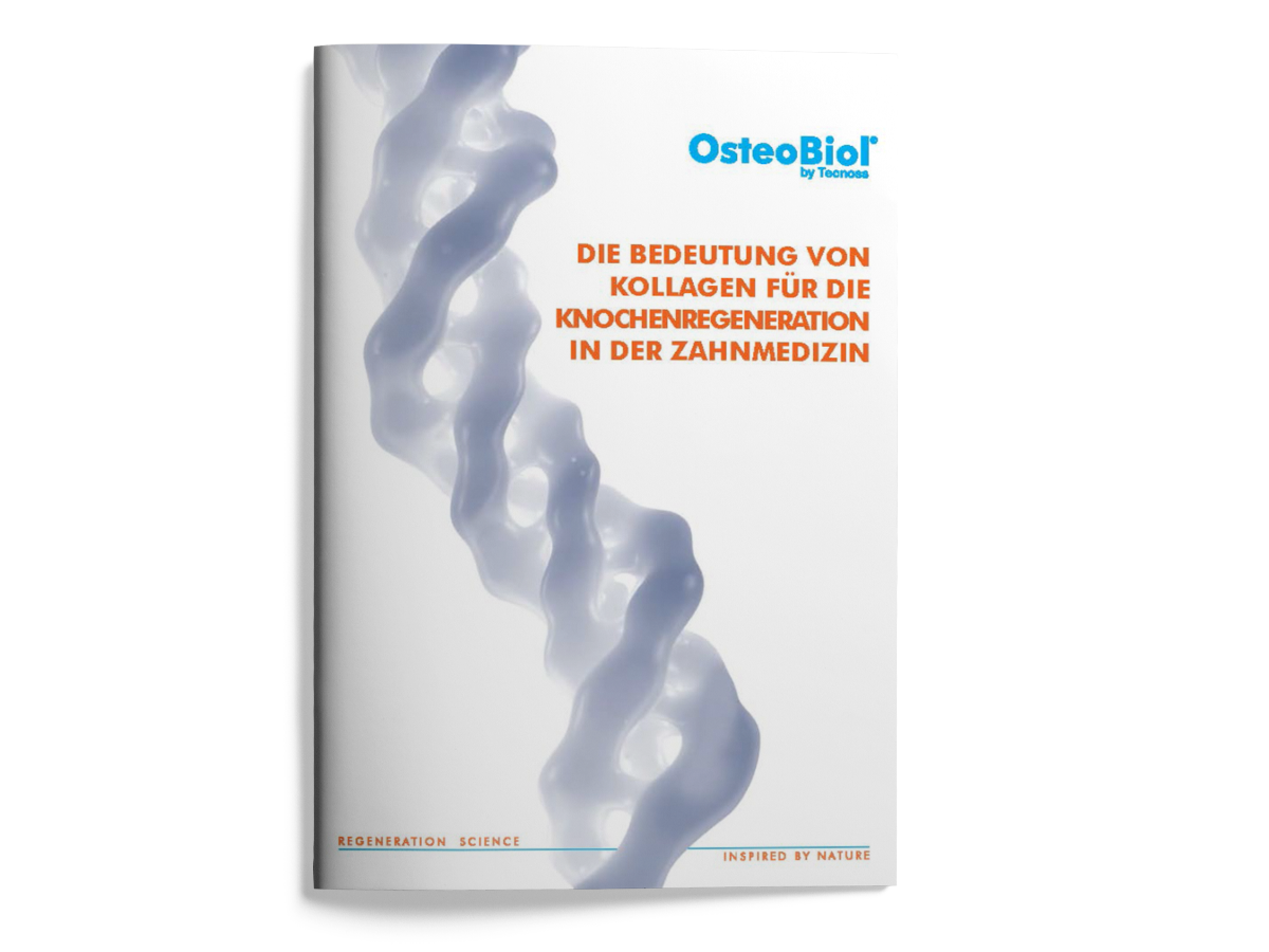 Mit OsteoBiol® by Tecnoss stehen Ihnen einzigartige Biomaterialien zur Verfügung. Erfahren Sie mehr über die Bedeutung von Kollagen für die Knochenregeneration in der Zahnmedizin in unserer Broschüre.