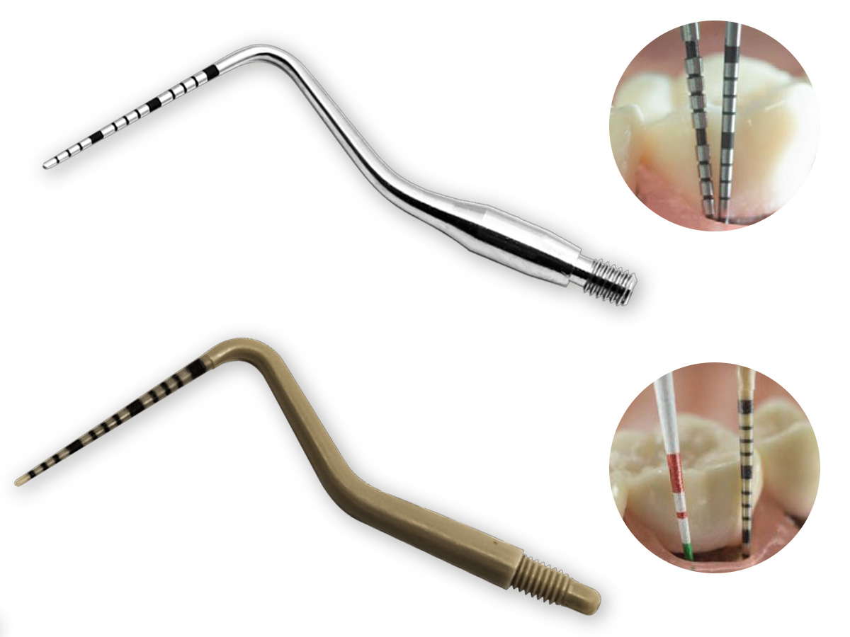 Dank ihrer perfekt abgerundeten Spitze, mit einem Durchmesser von 0,48 mm, erlaubt die UNC15 Parodontalsonde eine atraumatische Sondierung. Sie zeichnet sich durch ihre Flexibilität und Widerstandsfähigkeit aus und verfügt über eine präzise und langlebige Markierung von 1 bis 15. Durch das Herstellungsverfahren entfallen die Kerben, die bei anderen ähnlichen Sonden vorhanden sind. Speziell für die periimplantäre Sondierung ist die Sonde UNCPP15 aus PEEK entwickelt worden.
