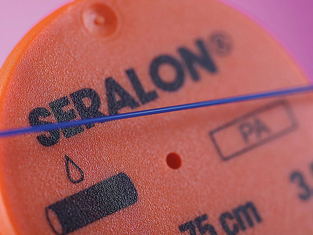 Seralon ist ein Polyamidfaden, der im Vergleich zu herkömmlichem monofilem Nahtmaterial auffallend weich und geschmeidig ist.