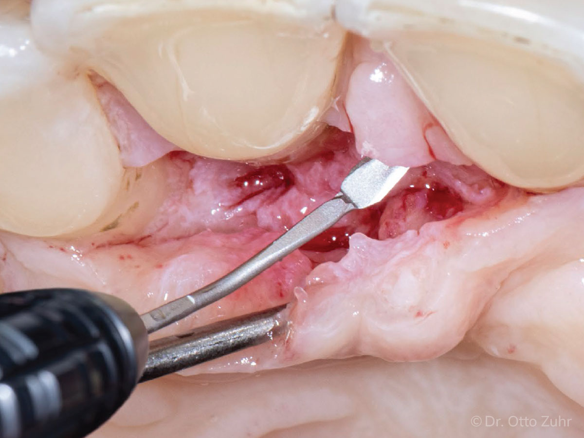 Regenerative Parodontalchirurgie mit anschließendem Kompositverschluss des Interdentalraumes
