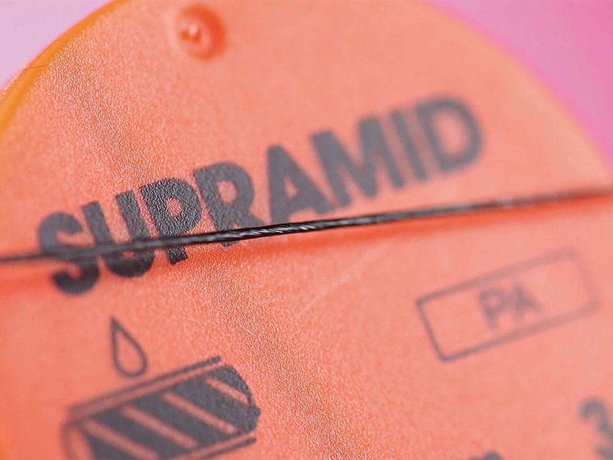 Das Nahtmaterial besteht aus gezwirnten Polyamidfasern, die ummantelt sind. Es besitzt eine hohe Zugfestigkeit und gute Knüpfeigenschaften. Pseudomonofil.